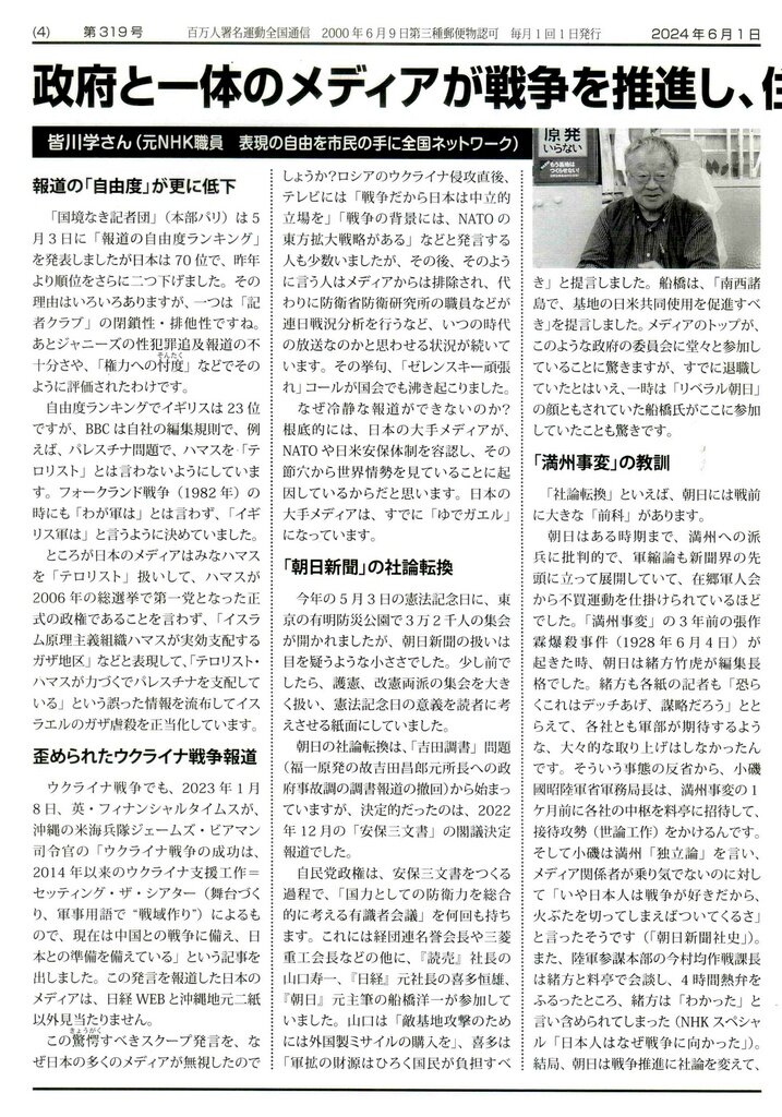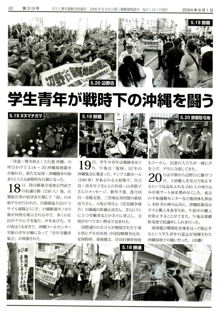 これからも改憲に反対することはもちろん、戦争に向かうあらゆる策動に立ち向かっていきましょう。(銀)