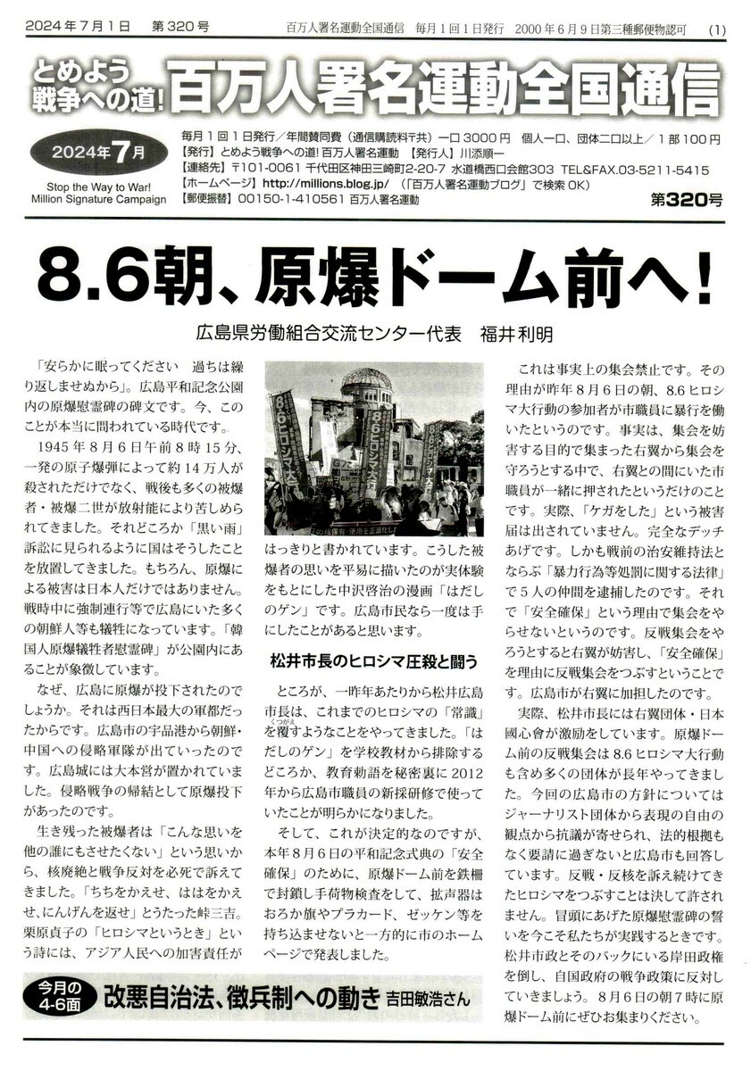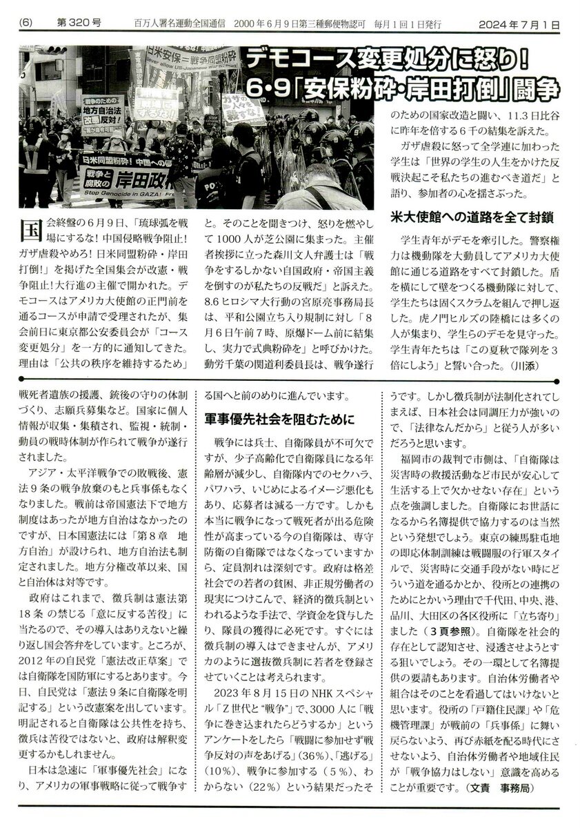 世界戦争情勢が強まる中で、日本政府はその一角を積極的に担おうとしています。それは同時に国内の反戦・反核闘争の圧殺攻撃の強化と一体です。