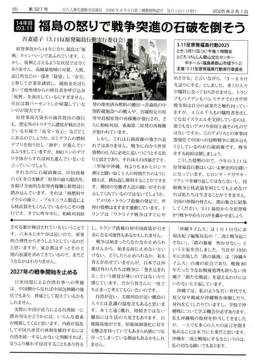6面上段は、14年目の3.11福島現地行動への訴えです。