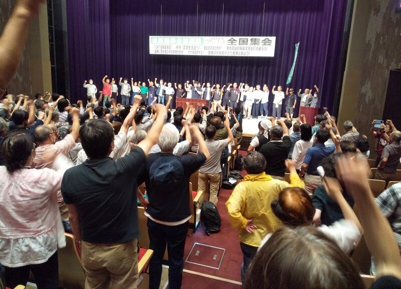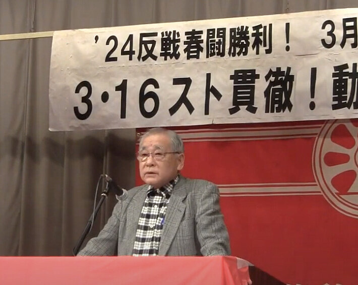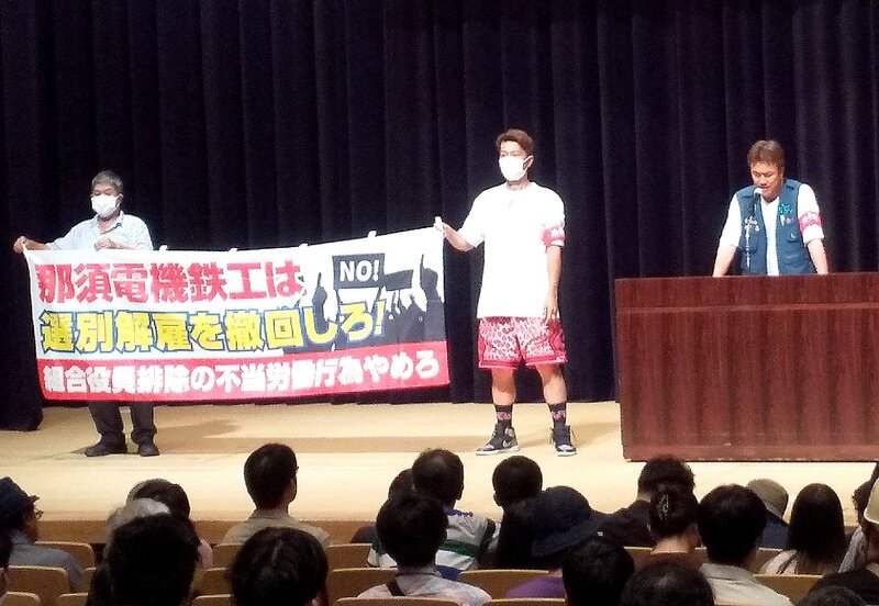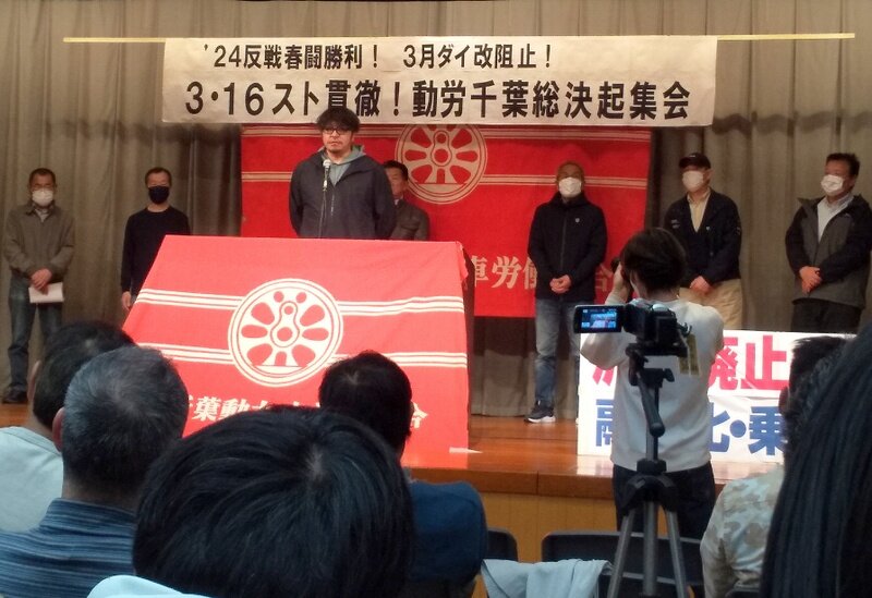 労働組合つぶしと闘おう、労働組合こそが戦争阻止の先頭に立とうと闘う3労組(関西生コン・港合同・動労千葉)が軸となって集会をけん引しました。福島の吉澤正巳さんや沖縄・宮古島の清水早子さんも駆けつけて特別アピール。体を張って原発や戦争を止めようという熱烈に訴えました。