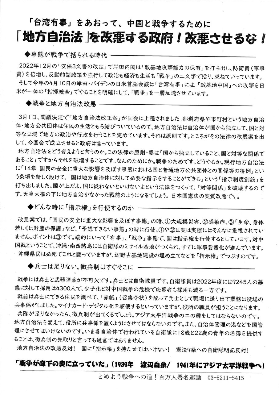 参考のために、当日のプログラムです。集会後、東京駅までデモ行進しました。