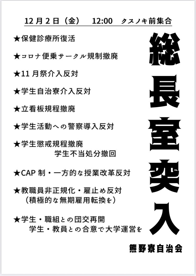 我々が総長室突入2022で要求した内容です。至極真っ当です。