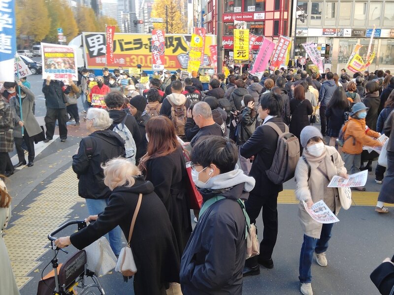 何のデモだ?何を言っているのだ?と注目する人々に、ビラを渡しました。