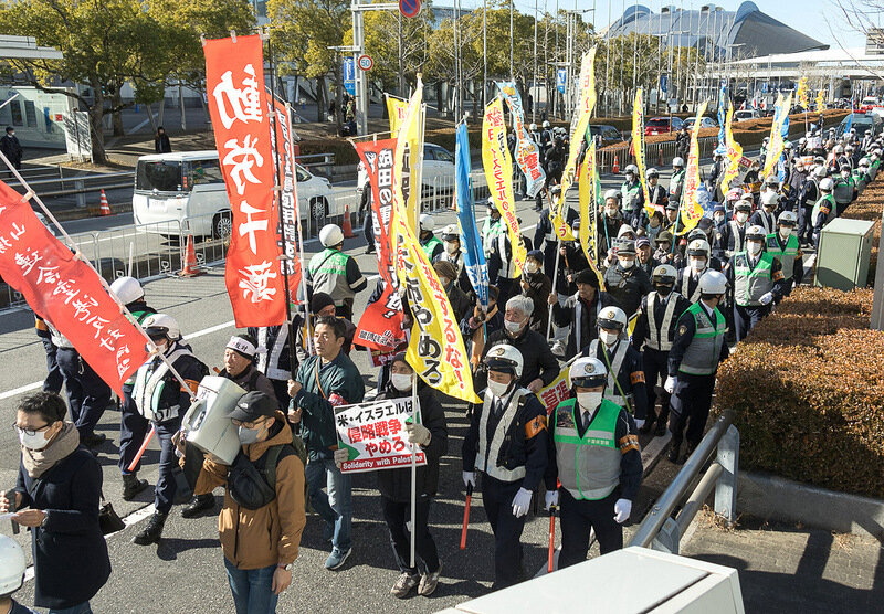 トランプ政権の登場で米日帝国主義による中国侵略戦争が加速する中で、武器見本市粉砕の闘いは、米日帝国主義による中国侵略戦争を阻止する重要な闘いとしてあります。世界各地で行われている武器見本市に対して、労働組合を先頭にした労働者人民の実力闘争が闘われています。パレスチナの労働組合が世界の労働者人民に対して、イスラエルへの軍事支援を止めてほしいと訴えている中で、幕張メッセで行われる武器見本市を日本の労働者人民の闘いで粉砕しましょう。