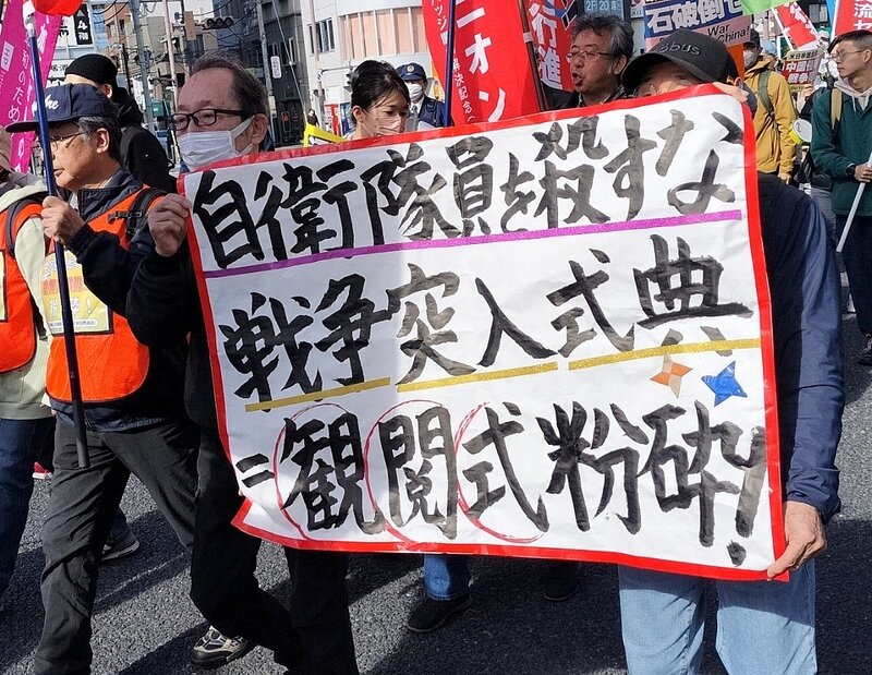 大行進千葉は、武器見本市絶対反対の大規模反戦デモや幕張メッセ包囲デモ第3弾、そして5月の武器見本市粉砕の連続闘争をともに闘うことを全国の闘う仲間に訴えます。改憲・戦争阻止!大行進の大飛躍をかけて米日帝国主義による中国侵略戦争のための武器見本市粉砕の闘いをともに闘いましょう!(改憲・戦争阻止!大行進千葉 S)